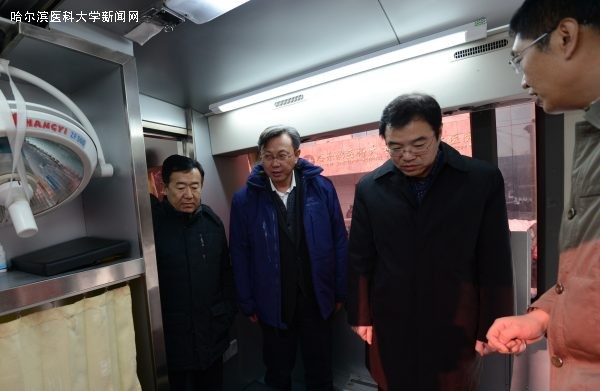 听取汇报后,在张斌、李剑锋、于凯江、王培军、焦军东等院领导陪同下参观了二院的“汽车医院”,了解了“汽车医院”的内部结构和设置,并就二院卫生应急体系建设与“汽车医院”的发展前景等问题提出了建设性的指导意见。