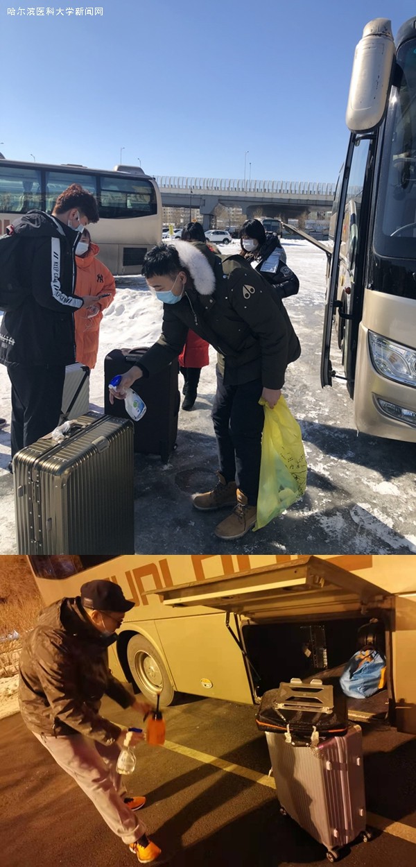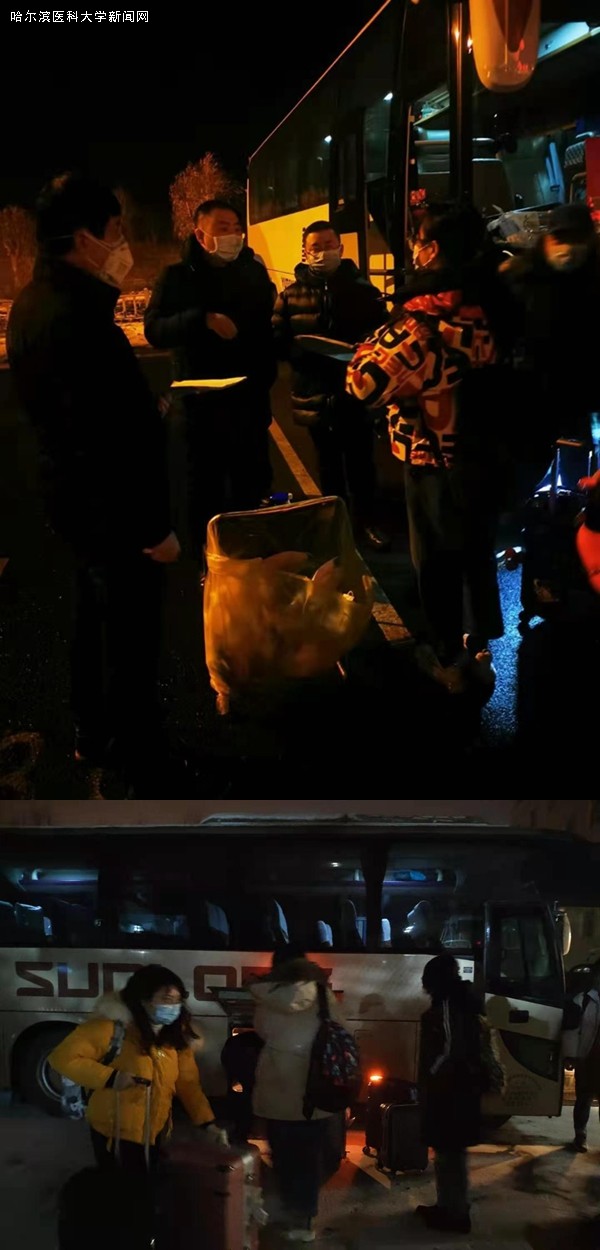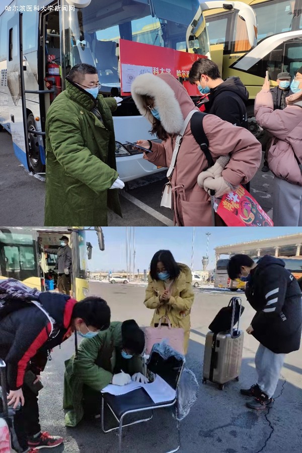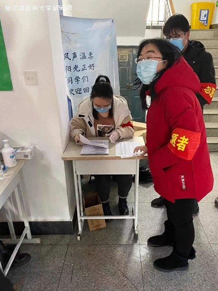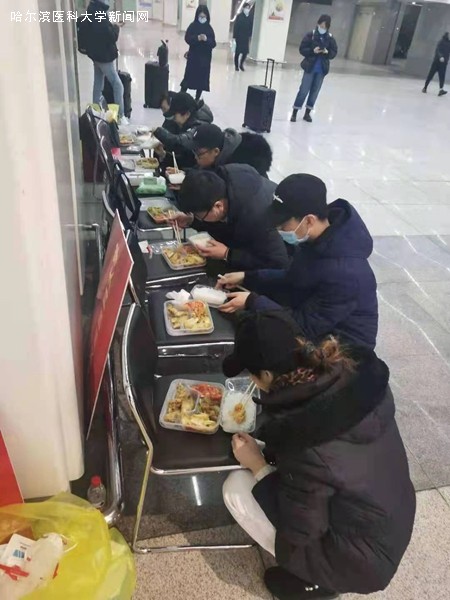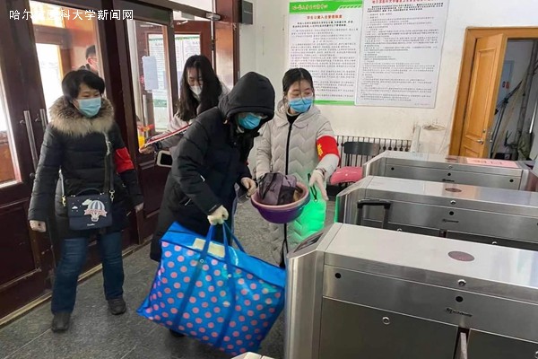 返校期间,担任接站志愿者的是青年教师,他们24小时全天候往返于两站一场和校园。3月4日因大雪导致高速封路,航班延误取消,给接站工作带来了很大的困难,但他们坚持反复与每一个学生电话沟通,反复核对航班信息,闭环式点对点接送8500余名学生回校。行李运输组志愿者同学冒着零下20多度的严寒,帮助同学转送搬运行李,领取快递包裹,毫无怨言。餐饮组志愿者同学从凌晨两点开始就帮助食堂为近万名学生准备早餐的餐盒,统计订餐信息,一个楼一个楼的配送餐饮,刚刚送完早餐又开始准备午餐,每天都忙得不可开交。核酸检测组的志愿者更是穿着厚厚的防护服,为每一名入校的学生做核酸检测工作,随到随采样,随采随送检,每晚到哈的最后一名学生采完核酸,都是天已经蒙蒙亮了,他们甚至顾不上休息,还要坚持完成白天的采样工作。
