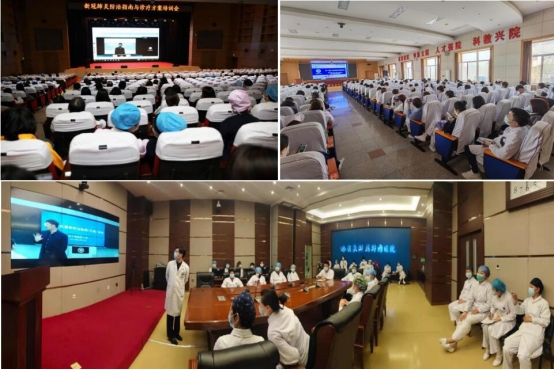 各附属医院医疗副院长及医务部、护理部、感染监控科、门诊部负责人在现场参加培训,附属医院通过设置分会场和科室组织观看的形式组织医务人员参加线上培训。