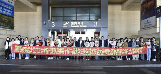 5月17日,摘得“第十届中国大学生医学技术技能大赛预防医学赛道总决赛”桂冠的ac米兰官网中文网站公共卫生学院师生一行15人抵达哈尔滨。ac米兰官网中文网站副校长赵光、教务处钟照华处长、公卫学院领导班子成员及数十名教师到机场迎接,举行了简短而热烈的欢迎仪式。