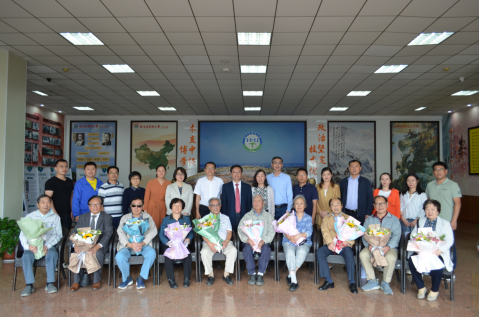 各位老教师的学生为功勋专家献花,党政领导班子为老教师们献上精心准备的礼物并与老教师们合影留念。