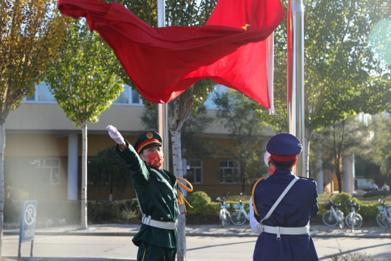 校区团委、学生处相关负责人以及教师团干部、部分辅导员及400余名青年团员参加了10月1日的升旗仪式。在全体师生的注目礼下,英姿飒爽的国旗班队员迈着整齐的步伐护送国旗入场,随着天使乐团奏响国歌,鲜艳的五星红旗冉冉升起。全体师生肃穆而立,怀揣着崇高的敬意共同庆祝祖国母亲72周岁生日。尹羿文、贺雨菡同学朗诵《强国有我》,鼓励同学们要秉承“木直中绳,博学载医”的校训,勤于钻研,勇于开拓,以青年发展促进经济社会发展为事业,书写祖国新的篇章。全体同学在领誓人的带领下庄严宣誓,一句句誓言掷地有声、铿锵有力。仪式最后,同学们齐唱团歌《光荣啊,中国共青团》,在雄壮激昂的歌声中与时代同历练,与医大共成长,为祖国繁荣富强努力奋斗,为青春书写无悔篇章。