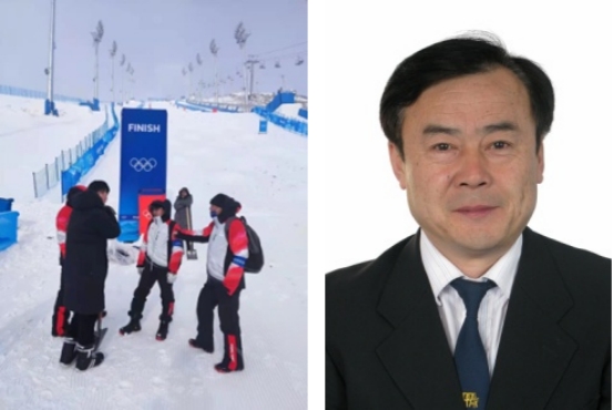王制(右一)原体育学部主任,教授,单板滑雪国际级裁判员,曾任第24届世界大学生冬季运动会单板自由式滑雪项目竞赛主任