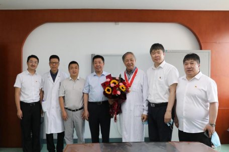 慰问中,院领导亲切地询问老党员们的生活和身体情况,对其为党和国家所作的贡献表示感谢。赵长宏书记为老党员同志颁发“光荣在党50年”纪念章,曲国蕃院长为他们送上鲜花。在依然奋战在临床一线的 84岁老党员赵家宏老师的办公室,领导们仔细了解他工作、生活和健康状况,赵家宏老师激动地说:“一直以来,院党委都非常关心我,感谢医院对我在各个方面的关怀和帮助,我们国家在党的领导下蓬勃发展,我们医院在院党委的正确领导下飞速前进。”老党员王德州激动地说:“领导们在百忙之中还不忘来看望我,虽然我现在年龄大了,但是我也时刻关心医院的发展,医院取得的优异成绩,让我们这些老员工非常高兴。”