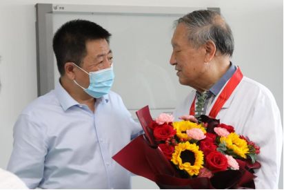 曲国蕃院长为老党员同志送上鲜花