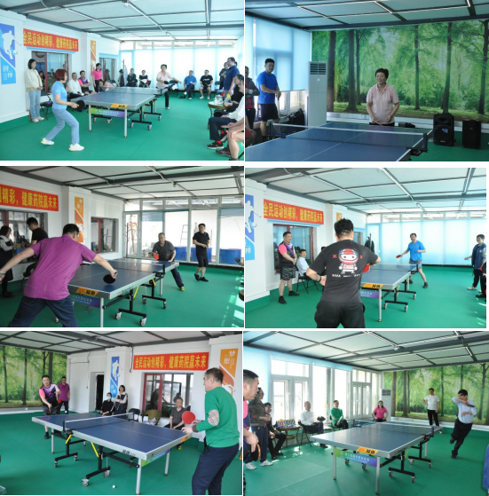 乒乓球比赛分为男子单打和女子单打,分两个阶段进行,第一阶段以科室为单位开展分组循环赛,第二阶段采用淘汰赛的模式。球台上,来自不同科室的选手们,于方寸战场间各显神通,每日中午的乒乓球室活力四射,热闹非凡,下旋、侧旋、扣杀、反拉……一连串的动作行云流水,划出一道道优美的弧线,博得周围球迷阵阵喝彩。
