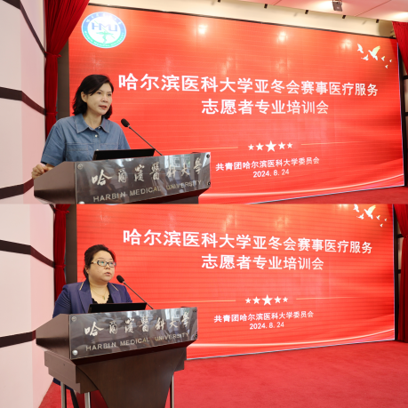 施旸做动员讲话,她希望全体医疗服务志愿者能够珍惜此次学习机会,积极提升急救技能、熟悉赛事医疗流程,以专业的姿态、温馨的服务,诠释“医者仁心”的崇高精神,在亚冬会的医疗服务工作中展现新时代医学生的风采与担当。随后,亚冬会执委会医疗卫生与反兴奋剂部志愿者服务工作负责人白璐为志愿者们详细讲述了志愿者的职责与使命,激励大家以饱满的热情和专业的态度投入到培训中。