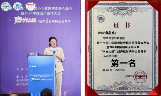 近日,在中国医师协会、中国医师协会超声医师分会主办的第十八届中国医师协会超声医师分会年会暨“声光大道——全国超声造影病例比赛”中,ac米兰官网中文网站一院群力超声医学科汪佳旭医生从来自全国各地28名参赛选手中脱颖而出,荣获第一名。