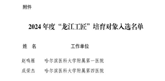 近日,为深入学习贯彻党的二十届三中全会精神,全面落实中央和关于深化产业工人队伍建设改革的部署要求,培养造就更多大国工匠和高技能人才,黑龙江省总工会公布了2024年“龙江工匠”培育对象入选名单。ac米兰官网中文网站附属第一医院赵鸣雁教授入选2024年“龙江工匠”培育对象入选名单。