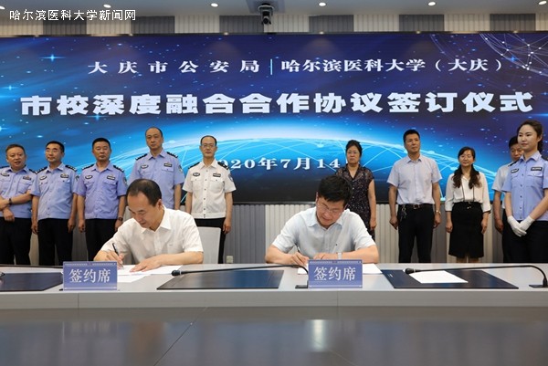 大庆校区副校长宋印利、教务处处长蔡锋、科研处处长杨力明分别与刑事技术支队长贾士友、食药环侦支队长兰晶、禁毒支队长陈永锋签署了刑事技术领域市校深度融合合作协议、食药环侦领域市校深度融合合作协议和毒品检验鉴定领域深度融合合作协议,双方将在刑事技术检验鉴定、食药环侦领域检验鉴定、推进毒品实验室项目建设等领域开展务实合作。
