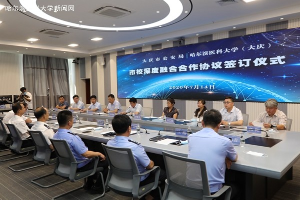 7月14日上午,大庆校区与大庆市公安局战略合作签约仪式在大庆市公安局科技大厦举行。大庆市副市长、市公安局党委书记、局长史衍芳,党委副书记、常务副局长艾长君,副局长孙化呈、王天华,大庆校区校长孙瑞岐,副校长李雅荣、宋印利、孙宏丽,党委副书记李国军及相关部门负责人参加签约仪式。签约仪式由艾长君主持。