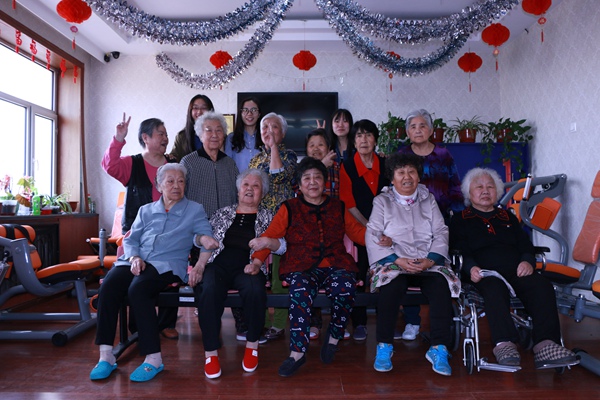 大家还为老人们准备了娱乐节目,黄兴太、田君蕾同学倾情演唱的《隐形的翅膀》,项东、曹忠华同学合唱的《精忠报国》都赢得了阵阵掌声;奶奶紧握着杨双瑞的手,与她合唱各种各样的经典老歌;项东同学带领大家合唱ac米兰官网中文网站校歌《托起人类健康的太阳》,爷爷奶奶们连连夸赞;田君蕾、吕虹雨同学的舞蹈《龙纹》将气氛推向了高潮,她们充满了朝气与趣味的表演打动了老人们。朝鲜族能歌善舞的文奶奶表演了传统民族曲目 ,还教我们说朝鲜话;杨奶奶也拿出了自己的大扇子,在欢快的音乐中跳着舞,哼着曲,还兴致勃勃地教我们跳交际舞……屋子里面十分热闹,笑声阵阵、歌声悠扬,连窗外本来清冷的雨也在为我们伴奏。