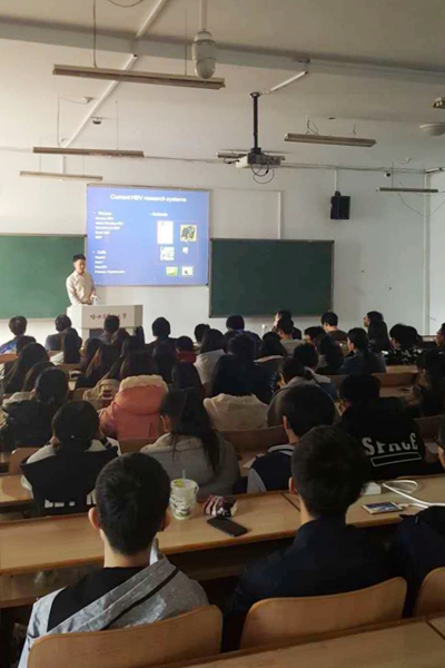 3月25日,在基础医学专业招生20周年之际,基础医学院学生总支特举办庆祝七年制基础医学专业招生20周年系列活动。本次活动以学术报告的形式开展,邀请到了2005级基础七年制优秀毕业生、”挑战杯”全国大学生课外学术科技作品竞赛一等奖获奖者钟国才为同学们做题为"Discovery of HBV receptor, NTCP"的学术报告,各年级同学纷纷踊跃参加,积极参与。