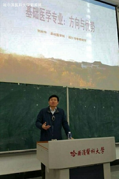 3月17日下午,基础医学院副院长钟照华教授在病原学馆为基础医学七年制的学生进行了有关专业特色、专业方向以及就业前景的讲座,基础5+2本硕连读和七年制大一到大五的200多名同学参加。