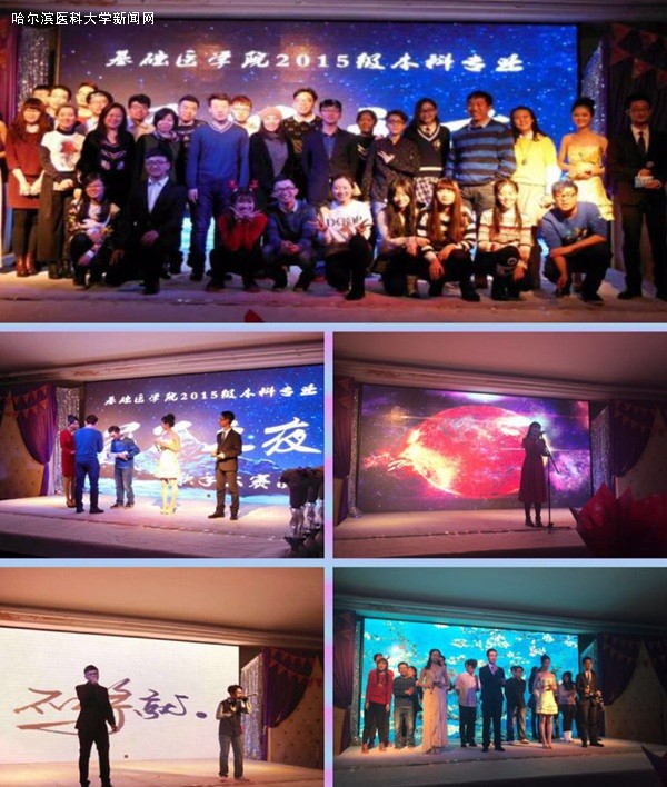 为了培养学生艺术欣赏水平,展示艺术风采,丰富课余生活,由基础医学院2015级本科学生会举办的“冠军之夜”歌手大赛决赛于平安夜12月24日晚六点整在食堂四楼礼堂隆重举行。ac米兰官网中文网站团委副书记王曦、基础医学院学生党总支王玉清、2015级党支部书记赵可奕、年级主任柳博和年级老师孙锐老师应邀出席并担任此次比赛评委,同时邀请到FM83.7哈尔滨新闻广播和FM95.8龙广音乐台的电台主持人出席本次大赛。各班代表担任大众评审团,基础医学院2015级本科的全体同学共同观看了此次比赛。
