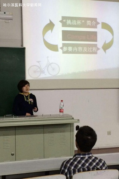 晚6时,近200名同学坐满了整个教室,王玉清老师也出席了本次活动。刘鑫同学首先向我们介绍了挑战杯的概况以及流程,紧接着讲述他们准备课题的经历。每一朵成功的花儿背后都浸透着奋斗的血和泪,科研亦是如此。从最初进入实验室的懵懂,到后来的熟练操作;从最初的一知半解,到后来的应用自如,其间的艰辛不言而喻。不过,辛苦的付出,有了挑战杯”大学生课外学术科技作品竞赛国赛二等奖这样丰厚的回报,也鼓励同学们努力向前。最后刘鑫向我们展示了一起参赛的其他选手的作品。