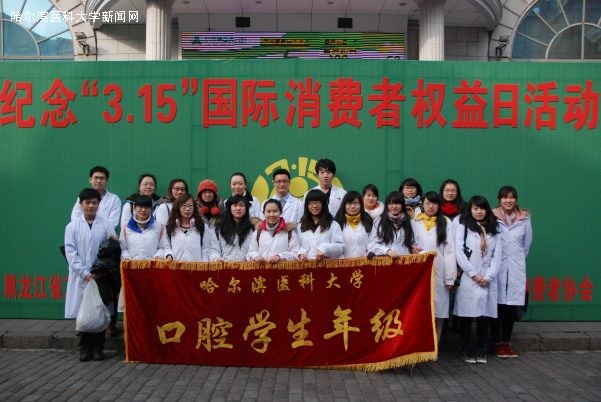 3月15日是国际消费者权益日,口腔学生年级与哈尔滨市工商局、哈尔滨市消费者协会、报社、电视台等相关部门在中央大街联合举办了消费者权益大型宣传纪念活动。