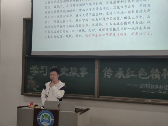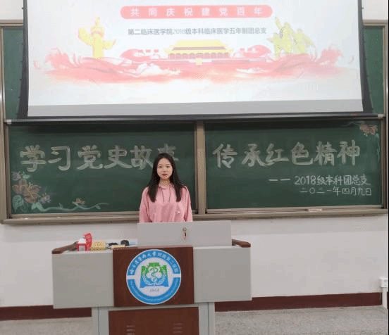 4月13日,2018级临床本科年级团总支积极响应校团委号召,举办以“学习党史故事 传承红色精神”为主题的党史宣传会,2018级全体入党积极分子参加了宣传会。