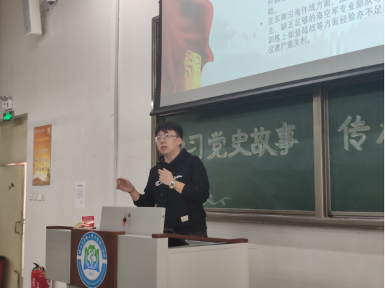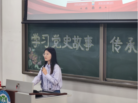 党史宣传会最后,团总支副书记袁梦登台总结:千秋伟业,百年恰是风华正茂,青年一代应不负历史,传承红色信仰,砥砺奋进前行。