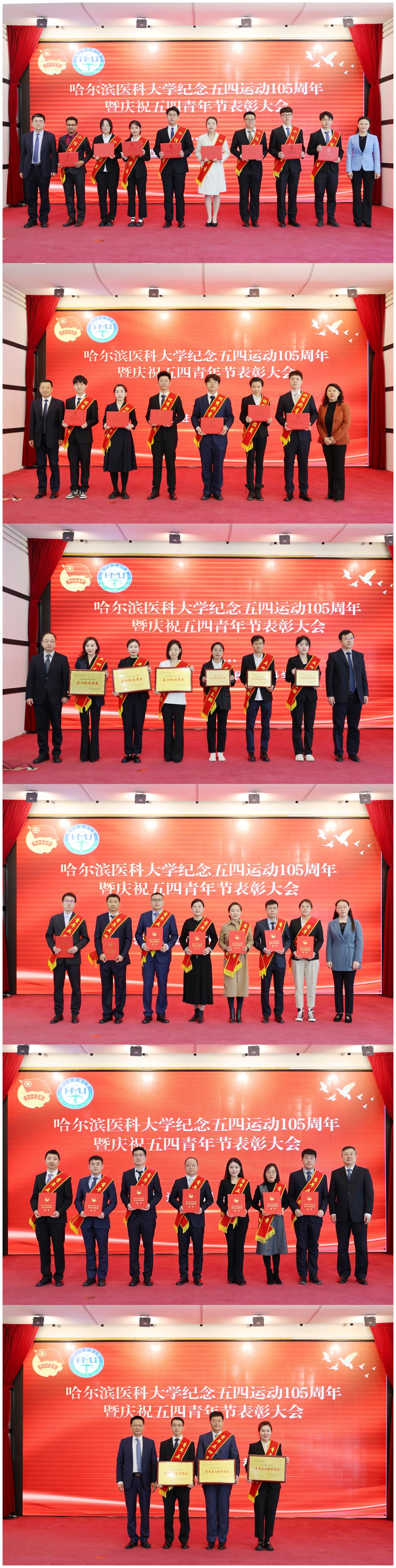 学校领导与“青年五四奖章”获得者、十佳大学生、“两红两优”获奖代表合影