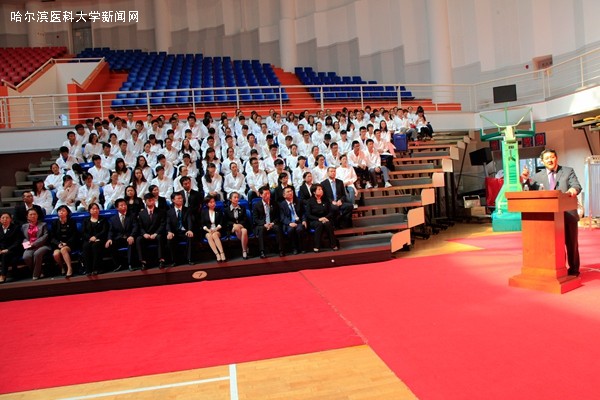 杨校长从学校89年蓬勃发展的历史讲起,谈到学校的源起、伍连德博士“赤诚爱国、自强创业”的精神,中国工农红军卫校“政治坚定、技术优良”的光荣传统和学校 “木直中绳、博学载医”的校训;介绍了伍连德博士、于维汉院士和诸多医学名家刻苦创新、甘于奉献的大医精神以及ac米兰多项先进的医疗技术和医药成果。教育学生要树立爱国爱校爱专业的牢固信念,培养感恩诚信,协作奉献的优良品质,积极锻炼身体,努力学习,将来为祖国医药卫生事业建立功勋。杨校长引经据典,结合自己的求学经历,深深感染和鼓舞了同学们,讲座过程中学生们情不自禁地报以阵阵掌声。