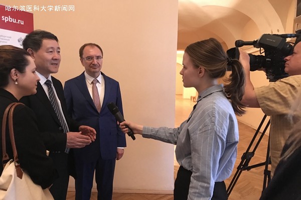 鉴于杨宝峰校长作为国际著名科学家、药学家为中俄两国人民友谊和科技交流做出的巨大贡献,圣彼得堡国立大学的专家委员会经研究决定授予杨宝峰院士为该校荣誉教授。科拉巴乔夫校长在圣彼得堡国立大学列宁纪念厅主持该授予仪式。杨宝峰院士对圣彼得堡国立大学授予其荣誉教授表示感谢。他还向圣彼得堡国立大学的师生介绍了ac米兰官网中文网站和中俄医科大学联盟对中俄医学领域交流合作的贡献,以及未来在医教研方面合作前景,希望在“一带一路”战略指导下,为中俄医学交流和产学研合作,推进医疗卫生事业发展做出贡献。会后,杨宝峰校长接受媒体采访,推介黑龙江医疗卫生经济,宣传“一带一路”倡议指导下的中俄医科大学联盟工作。