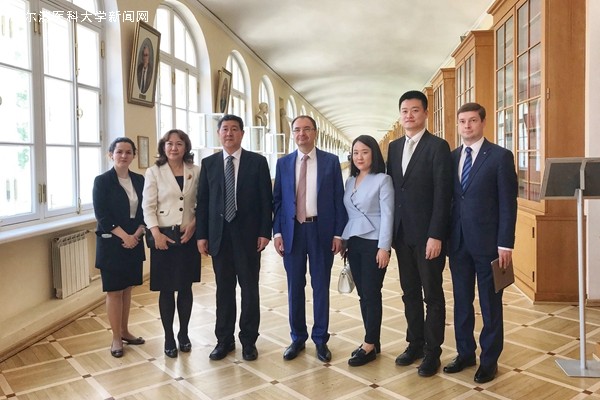 5月25日,杨宝峰校长一行抵达圣彼得堡国立大学,在圣彼得堡大学校长科拉巴乔夫院士陪同下,参观了世界现存最大的大学古图书长廊,并介绍了门捷列夫、列宁、普京及微波发明者的办公室。两校还就中俄医疗教学和科研交流合作展开会谈,并就联合办学和合作创办医院意向展开了讨论。