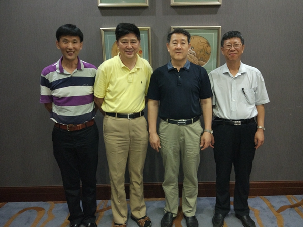 从左至右分别为地病中心克山病防治研究所王铜教授、美国康奈尔大学终身教授刘瑞海、校长杨宝峰院士、中国疾病预防控制中心地方病控制中心主任孙殿军