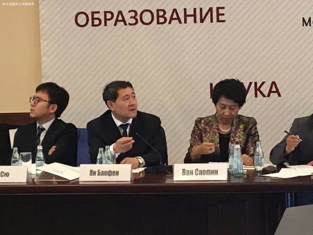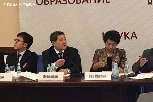 杨宝峰院士分别在“中俄医科大学联盟框架下的合作”及“跨区域合作”两个议题中作为中方代表作报告。总结并高度评价了中俄医科大学联盟开展的工作。表示将充分利用所有可行渠道来进一步在中俄医科大学联盟框架下开展先进医疗技术研发和吸纳的合作,加强信息、人员互派。双方将发展培养卫生领域专家的协作,进一步推动两国卫生和医学教育机构合作,加强科研和实用医学合作,联合培养医务等专业技术人员,继续互派师生。