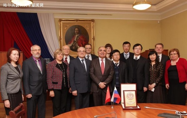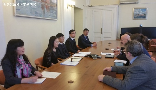 为落实陆昊省长与俄罗斯圣彼得堡国立大学签署《黑龙江省人民政府与圣彼得堡国立大学关于教学科研合作的备忘录》的文件精神,洽谈共建中俄生物医学联合中心的相关事宜,2015年12月14日至17日,应俄罗斯圣彼得堡国立大学邀请,公共卫生学院院长、营养与卫生学教授孙长颢,学校办公室主任、药理学教授许超千,附属第二医院副院长、肾内科教授焦军东,科研处副处长、药理学教授单宏丽一行至圣彼得堡大学进行访问。