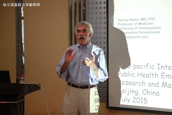 应卫生管理学院邀请,美国宾西法尼亚大学的Harvey Rubin教授参加由卫生管理学院主办的“亚太卫生应急风险及战略研究国际大会”。在大会召开前夕,Rubin教授应邀到ac米兰进行学术讲座。7月21日上午,卫生管理学院会议室座无虚席,Rubin教授以《传染病的全球治理对策与思考》为题,为前来参加会议的全体师生作了精彩的报告。 Rubin教授指出:传染病的传播位列全球十大风险影响的第二位,对于遏制未来不可避免的突发事件爆发,协调反应和发展全球治理机制至关重要。Rubin教授的报告深入浅出,在场师生受益匪浅。