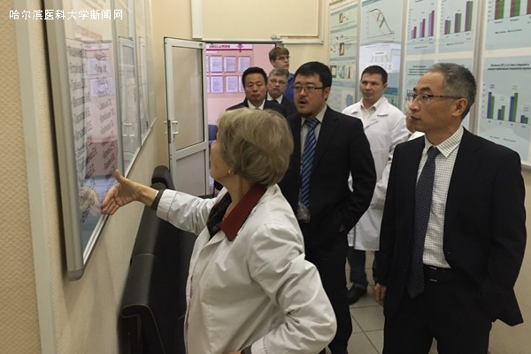 在访问期间,代表团还参观了药理系、生物化学系及人体解剖系等教研室,拉利奥诺夫等教授向代表团介绍了各系的发展历史,及在教学、科研方面取得的一些成绩,并带领代表团参观了实验室、学生教室及标本馆等,双方就医学教育、学术研究方面的经验进行了交流,双方对共同申请国际合作项目表达了很大兴趣,也表示希望通过更多的学术交流提高彼此基础科研与医学转化水平。