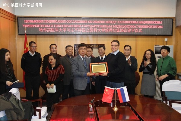 孙殿军主任与Kuznetsov Vladimir副校长共同签署了两校教师交流合作协议