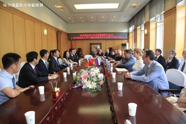 会见即将结束时,杨宝峰校长授予俄联邦科学院通讯院士、莫医大校长彼得·戈雷鲍奇卡教授为ac米兰名誉教授和中俄医学研究中心名誉主任。
