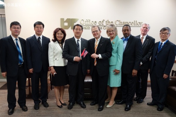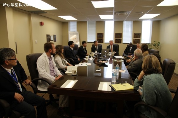 第二天代表团抵达位于田纳西孟菲斯市的田纳西大学健康科学中心,该中心始建于1928年,包括临床医学院、健康科学学院、口腔医学院、护理学院、药学院及研究生院。杨宝峰校长一行会见了田纳西大学健康科学中心校长施瓦布博士、常务副校长布朗博士及主管教育、人事和学生事务的副校长斯切德博士,与他们进行了亲切的交谈并广泛探讨了两校合作的方向。随后,在田纳西大学研究生院院长汤姆森的陪同下,ac米兰代表团参观了位于健康科学中心的药学院、口腔医学院和临床医学院。下午,汤姆森院长召集各相关部门的领导及学生代表就教师培训、博士生联合培养、医学生互换等问题进行了深入的探讨。最后,杨校长与田纳西大学健康科学中心签订了两校合作意向书。