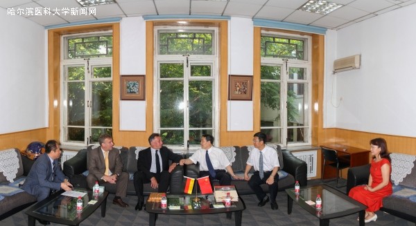 7月3日上午,德国奥格斯堡医学中心神经外科副主任Nikolai G Rainov博士、Volkmar Heidecke博士来ac米兰访问。杨宝峰校长在主楼二楼会议室亲切会见了两位教授。地病中心主任孙殿军、一院党委书记赵世光、国际交流处副处长兼国际教育学院副院长杨丹陪同参加了会见。
