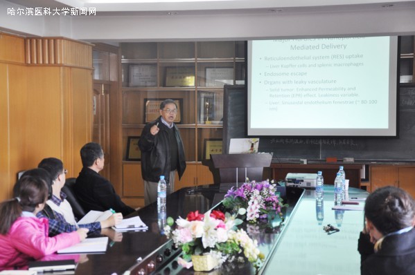 10月14日,美国北卡罗来纳州大学Leaf Huang教授在药学院7楼会议室作了题为《Lipid-Calcium-Phosphate (LCP) Nanoparticles for Drug and Gene Delivery》的学术报告。药学院相关领域的研究人员到场听取了报告,并与Leaf Huang教授进行了热烈的讨论和深入的交流。