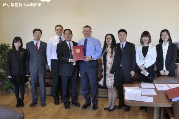 4月9-13日,应俄罗斯太平洋国立医科大学校长的邀请,ac米兰图书馆馆长曲章义教授受杨宝峰校长的委托,带领转化中心杨树才教授、药理教研室潘振伟教授、俄语教研室主任马华、国际交流处张爽和2011级俄语医疗系2名学生一行7人,参加太平洋国立医科大学主办的、以“实验医学、预防医学和临床医学面临的问题”为主题的第十四届远东青年学者和学生国际学术研讨会。