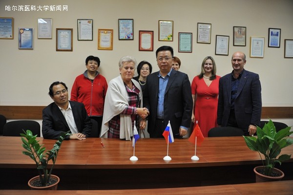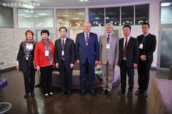 代表团一行受到了ISMU大学的热烈欢迎,曹景文副书记率团分别会见了马洛夫校长、负责国际交流工作的塔玛拉副校长、负责科研工作的亚历山大副校长和负责教学工作的安德烈副校长等学校领导,双方进行了亲切友好的会谈,回顾了以往的合作成果,商讨双方进一步开展合作的事宜,确定了双方共同培养研究生、互派访问学者和学生、联合开展科研和医疗等活动的框架方案。参访期间,代表团参观了伊尔库茨克地区肿瘤医院,健康体检中心,ISMU免疫与病毒研究所,艾滋病临床诊疗中心、药学系等。于凯江院长与伊尔库茨克肿瘤医院维多利亚院长签署了两院合作协议,就互派医生、研究生和远程会诊等达成共识。公卫学院曲章义教授和免疫与病毒研究所Zlobin院士商讨了联合培养学生、申报课题和发表文章等具体事宜。