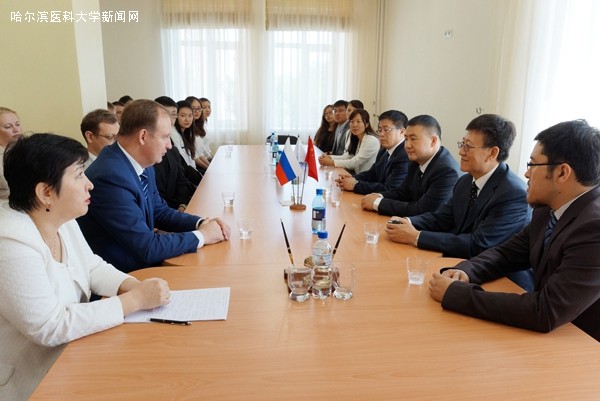 与远东国立医科大学校长康斯坦丁等进行会谈