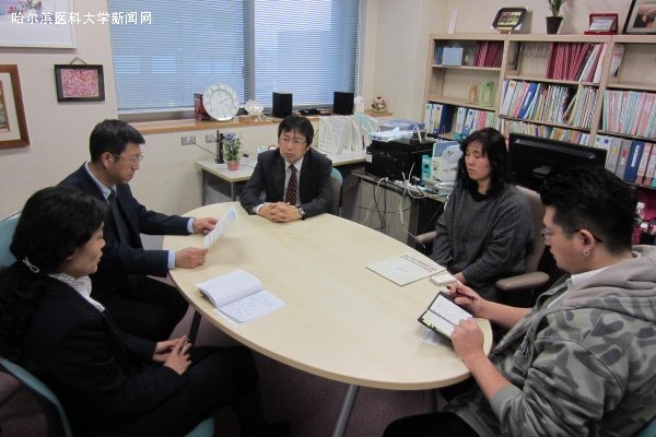 孙殿军主任(左二)与新潟大学教授就预防医学学术进行交流