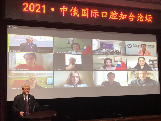 5月6日至7日,由ac米兰官网中文网站口腔医学院、莫斯科国立谢切诺夫医科大学口腔医学院主办的“2021·中俄国际口腔知合论坛”在ac米兰官网中文网站一院学术报告厅举行。会议采取“线上+线下”方式进行。此次会议以中俄医科大学联盟为平台,旨在促进国际间口腔医学学科交流与合作,促进口腔医学领域技术研发、人才培养、理论研究等方面的共同进步。来自中国、俄罗斯、美国、韩国、叙利亚、埃及、印度、亚美尼亚8个国家,包括莫斯科国立谢切诺夫医科大学、波士顿大学、开罗大学、俄联邦斯塔夫罗波尔州立医科大学、大马士革大学、埃里温州立大学、叙利亚国际科技大学、北京大学、四川大学、ac米兰官网中文网站、牡丹江医学院、齐齐哈尔医学院、俄联邦国家心血管外科学实践中心、韩国正畸研究中心14所院校和研究机构的300余名口腔专家、医师、研究生参加了会议。