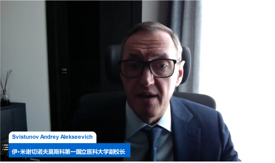 斯维斯图诺夫向所有参会嘉宾转达了中俄医科大学联盟俄方主席、伊·米谢切诺夫莫斯科第一国立医科大学校长格雷鲍奇卡院士的问候,并对大会的成功举办表示祝贺。斯维斯图诺夫特别提到,中俄医科大学联盟对双边医药卫生事业发展所作出的重要贡献受到了中俄人文合作委员会的高度赞赏。当前,在全球面对新冠疫情的背景下,该联盟已成为知识共享和科技交流的国际化平台,同时也为深化双方抗疫合作做出了积极努力。此次论坛的举办,为中俄两国医学青年学者提供了非常好的交流机会,希望双方学者能够以此为契机,建立新的合作关系。
