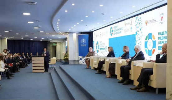 会议开幕式由俄罗斯卫生部副部长代表俄罗斯卫生部部长Mikhail Murashko致辞,他强调了基础医疗的重要性,提到陪伴患者、管理患者的健康风险、引导患者的改善健康是目前医生需要具备的一种能力。医学院校的主要任务就是培养国家高素质人才。俄联邦卫生委员会副主席、联盟杜马议会科学委员会副主席、国家医学院院长以及来自马来西亚、印度等国专家参加此次会议。