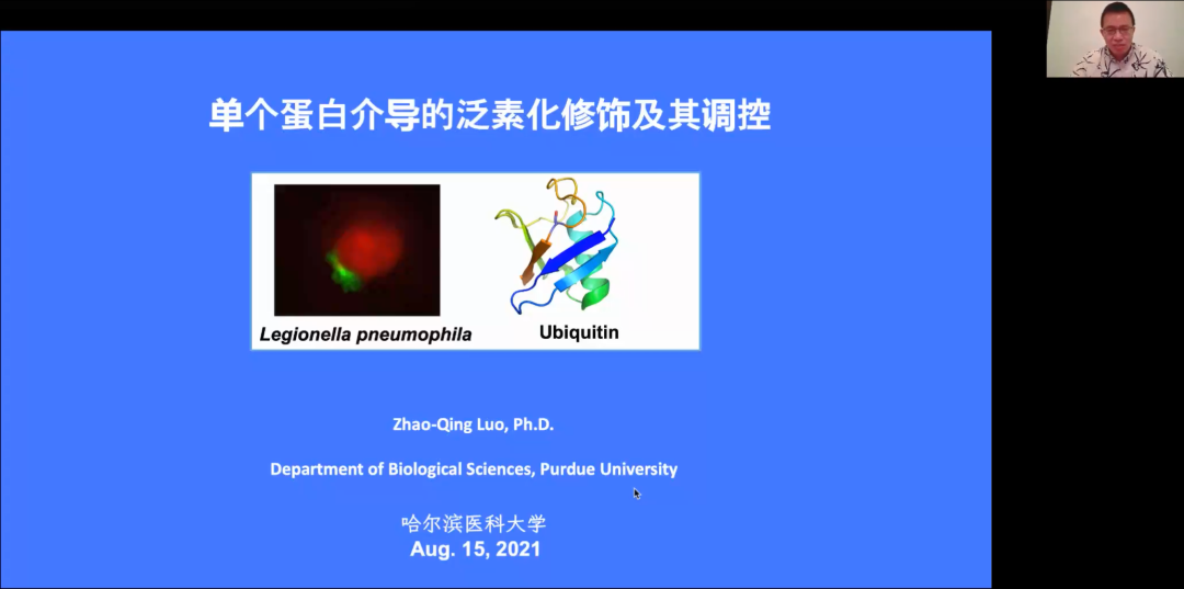 美国普渡大学罗招庆教授作了《单个蛋白介导的泛素化修饰及其调控》的报告,指出:独立蛋白作为一种手段引导人们去探讨正常情况下难以检测到的细胞生物学的过程,同时提出,做科研要有持之以恒的精神。