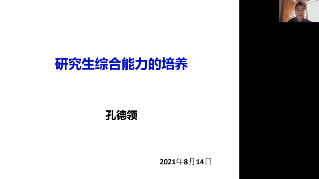 南开大学孔德领教授以《研究生综合能力的培养》为题,结合自身多年培养研究生经历,总结出几点心得,即:“培养”是研究生教育的核心,要因材施教,尊重、关心、鼓励和锻炼学生,导师应培养学生组织能力、实验能力、交流能力、胜任多方面工作的能力等。