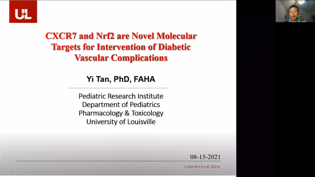 美国路易斯维尔大学谭毅教授分享了《CXCR7是调节糖尿病内皮祖细胞(EPC)血管再生功能的新靶点》,谭教授以自己多年从事糖尿病、心肌病的机制研究的经验,讲授了自己发现的靶点和干预措施。