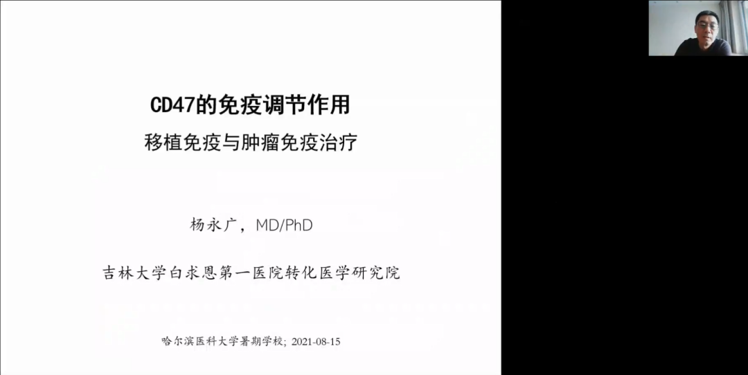 吉林大学杨永广教授作了《CD47的免疫调节作用,抑制免疫与肿瘤免疫治疗》的讲座,杨教授主要从事人源化疾病动物模型、肿瘤免疫等研究,并介绍了异种移植的收益、发展瓶颈和免疫排斥研究方面取得的成效。