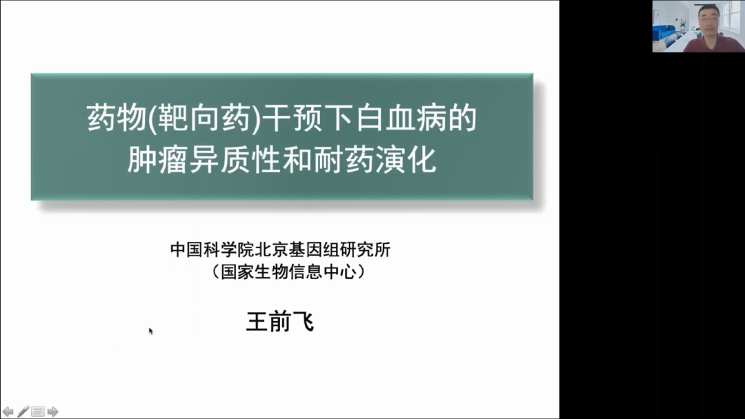 中科院北京基因组研究所王前飞研究员作了《药物(靶向药)干预下白血病的肿瘤异质性和耐药演化》的报告,报告围绕靶向治疗的理念和执念、肿瘤异质性和耐药突变、靶向药和耐药突变演化和从演化看靶向治疗四个方面提出了自己的见解,并解答了学员的疑问。
