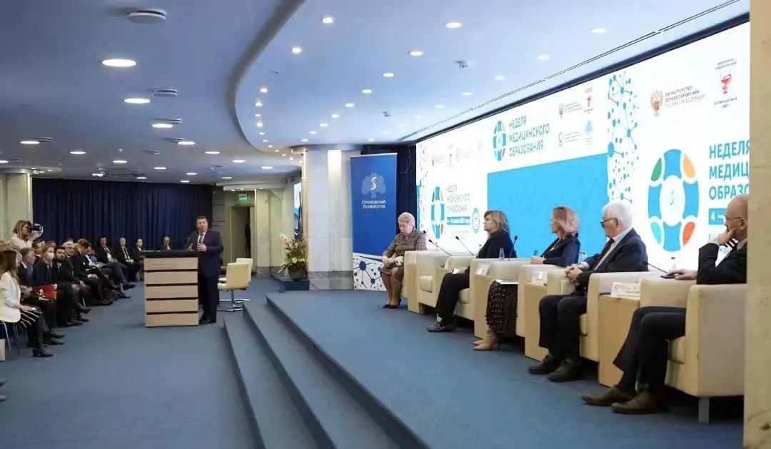 会议开幕式由俄罗斯卫生部副部长代表俄罗斯卫生部部长Mikhail Murashko致辞,他强调了基础医疗的重要性,提到陪伴患者、管理患者的健康风险、引导患者的改善健康是目前医生需要具备的一种能力。医学院校的主要任务就是培养国家高素质人才。俄联邦卫生委员会副主席、联盟杜马议会科学委员会副主席、国家医学院院长以及来自马来西亚、印度等国专家参加此次会议。
